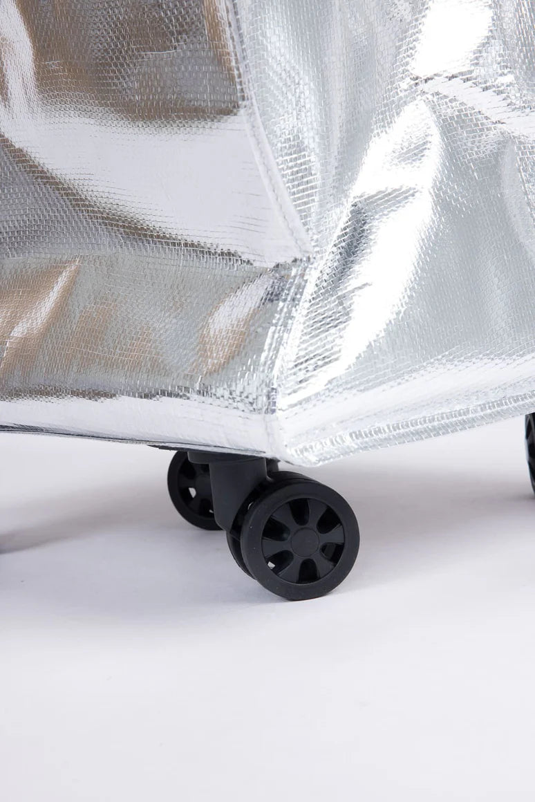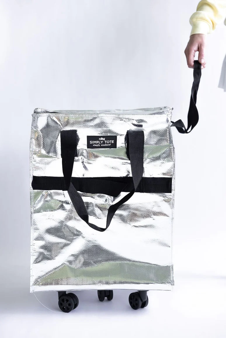 This rolling tote is ideal for transporting extra clothing, accessories, or other essentials wherever you go. Its five wheels ensure smooth maneuverability, while the front pocket provides convenient access to your items. When not in use, it conveniently collapses for compact storage. Crafted from 100% polypropylene for durability and ease of use.