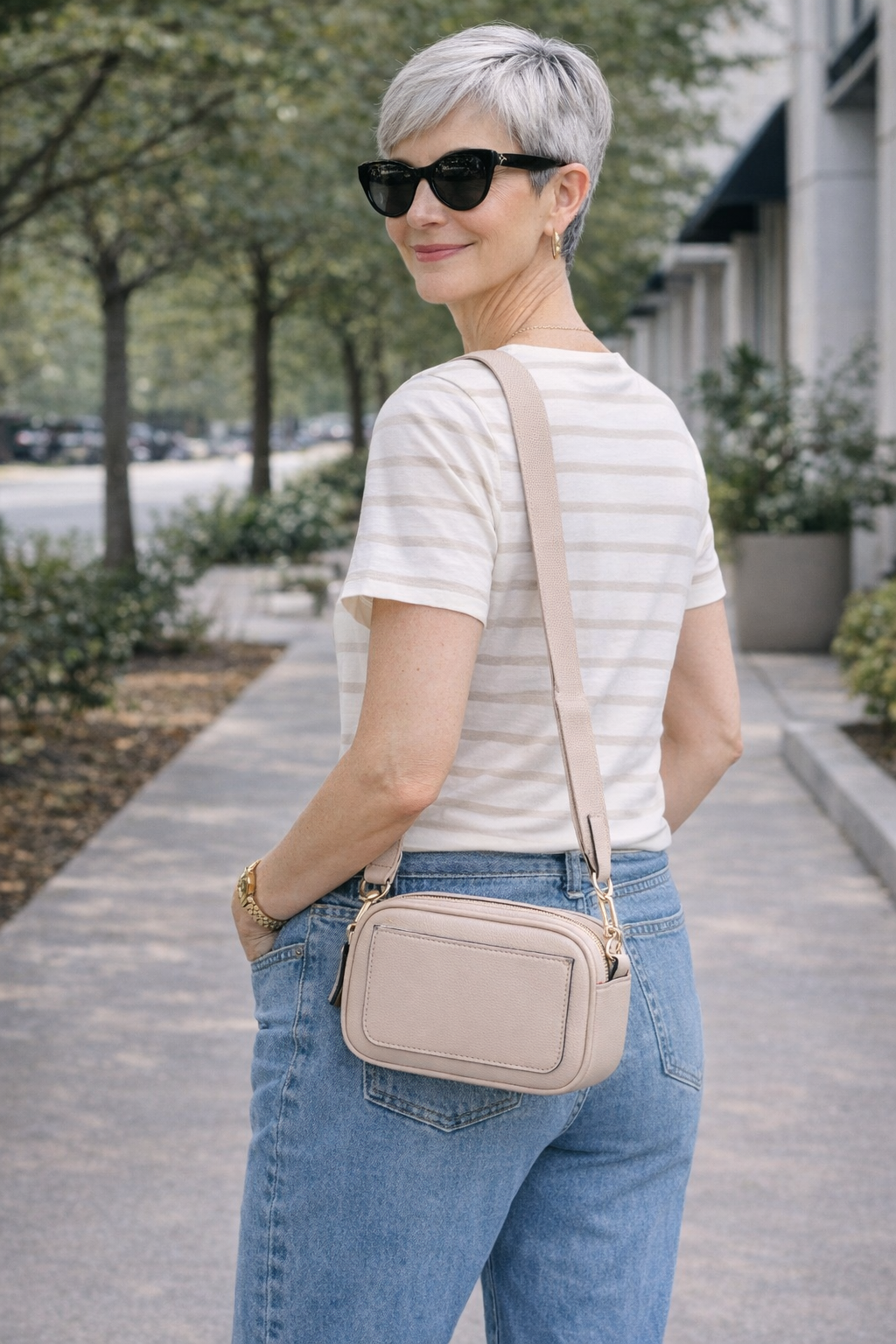 The adjustable strap lets you wear it comfortably crossbody or over the shoulder, and it can be removed altogether for a more streamlined look. Finished with a handy slip pocket for quick-access items, this bag is a go-to for errands, travel days, or anytime you want to stay hands-free and polished.
