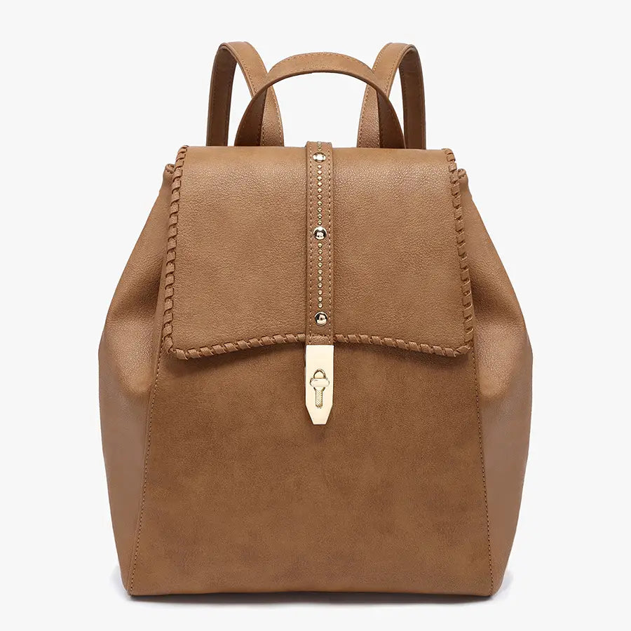 The twist-lock flapover closure adds a refined finish, while whipstitch trim and studded details give it that extra personality we love. Thoughtfully designed with multiple zip pockets, adjustable straps, and interior organization, it’s as functional as it is stylish. And since it’s made from vegan leather, you get a luxe look without compromise.