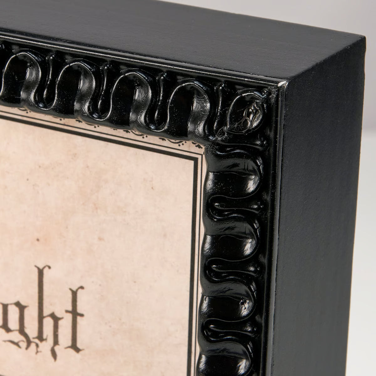Matte black inset frame with detailed molded resin trim