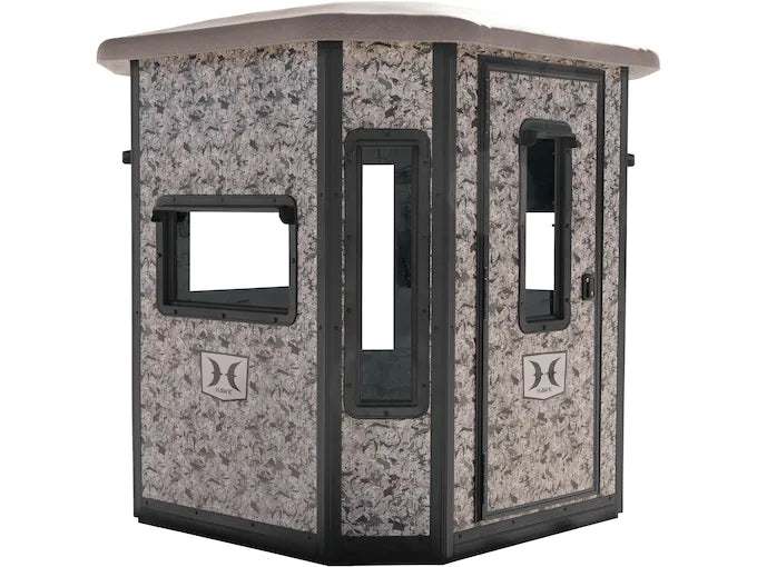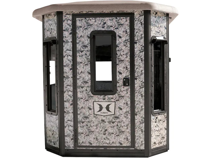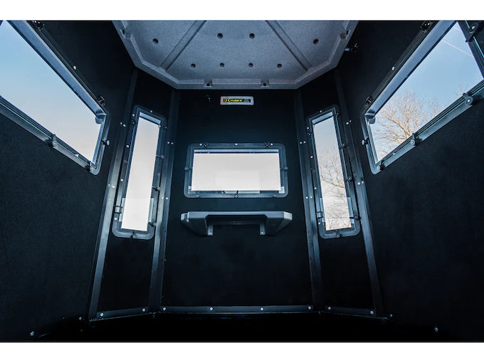 The Hawk Office Box Blind features an all metal construction with spray foam insulated walls and floor. The added insulation also plays a part in noise deadening as well so you can stay warm and not have to worry about making as much noise. The metal floor is layered with high compression strength foam and topped with a high-density rubber mat for added comfortability. It features a full sized, horizontal window as well to allow for archery shots. The Hawk Office Box Blind measures 6’ square x 6.5' tall and ships fully assembled and field ready.