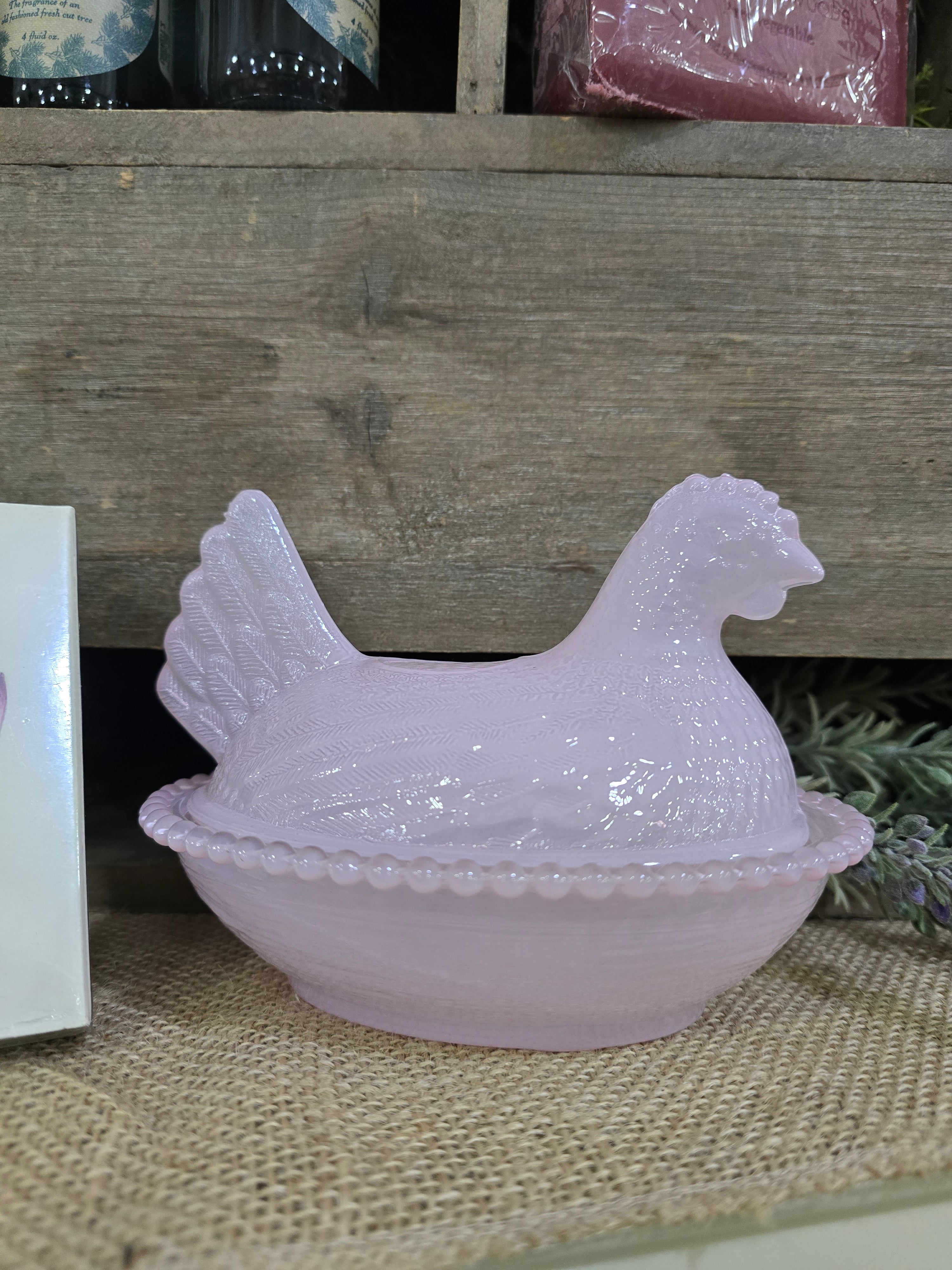Bring a little charm and nostalgia to your table with our Hen on Nest Covered Dish π. Available in three beautiful painted glass colors β pink, jade, and white β this vintage-inspired dish is perfectly sized for candies, nuts, sauces, or condiments. The intricate detailing of the classic hen-on-nest motif makes it both decorative and functional. A sweet accent for Easter entertaining or year-round farmhouse style, this timeless piece will quickly become a favorite.