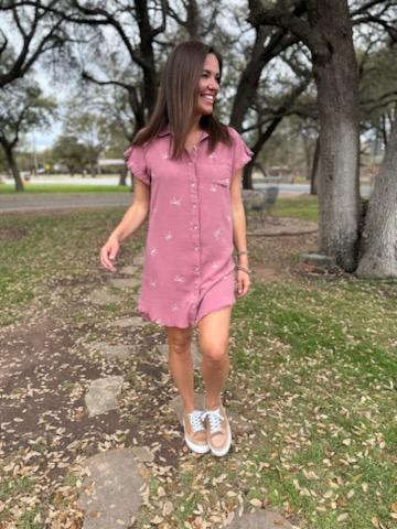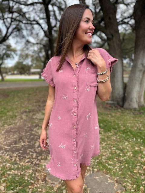 Timeless and effortlessly chic, the Rose Slate Embroidered Linen Shirt Dress is the perfect blend of casual charm and refined detail. Crafted from a breathable linen blend, this dress drapes beautifully, offering a relaxed yet flattering silhouette. The soft rose slate hue is elevated with delicate ivory ribbon embroidery, adding an elegant, artisanal touch.