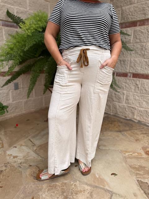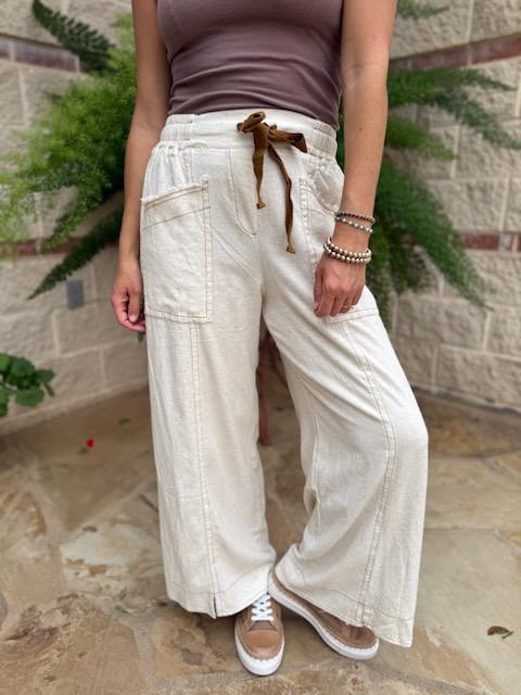 Coastal Comfort Linen Wide-Leg Pants – Oatmeal
