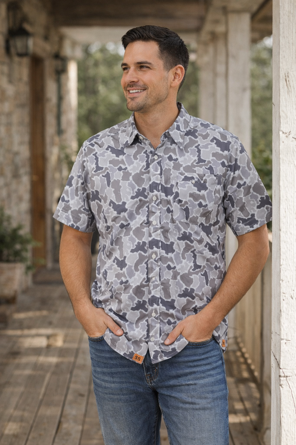 👕 Simply Southern Gray Camo Shirt (Men’s Coastal Button Down)