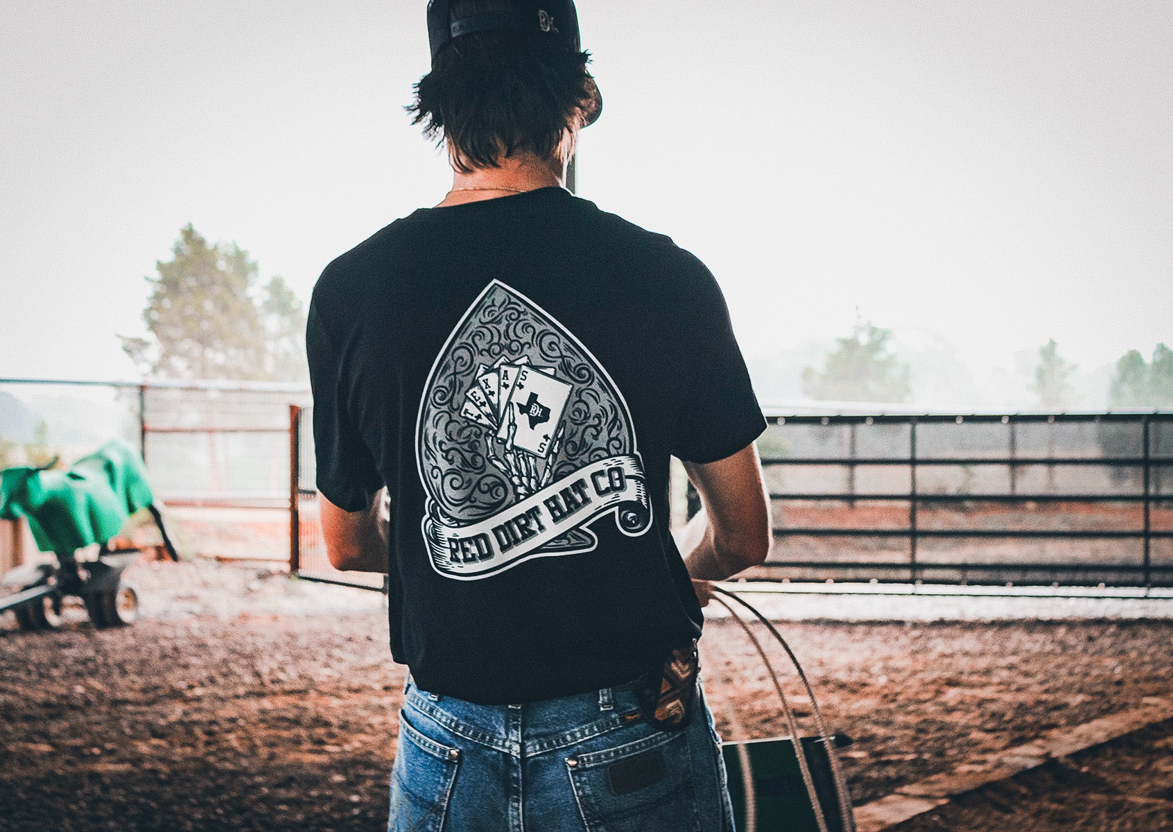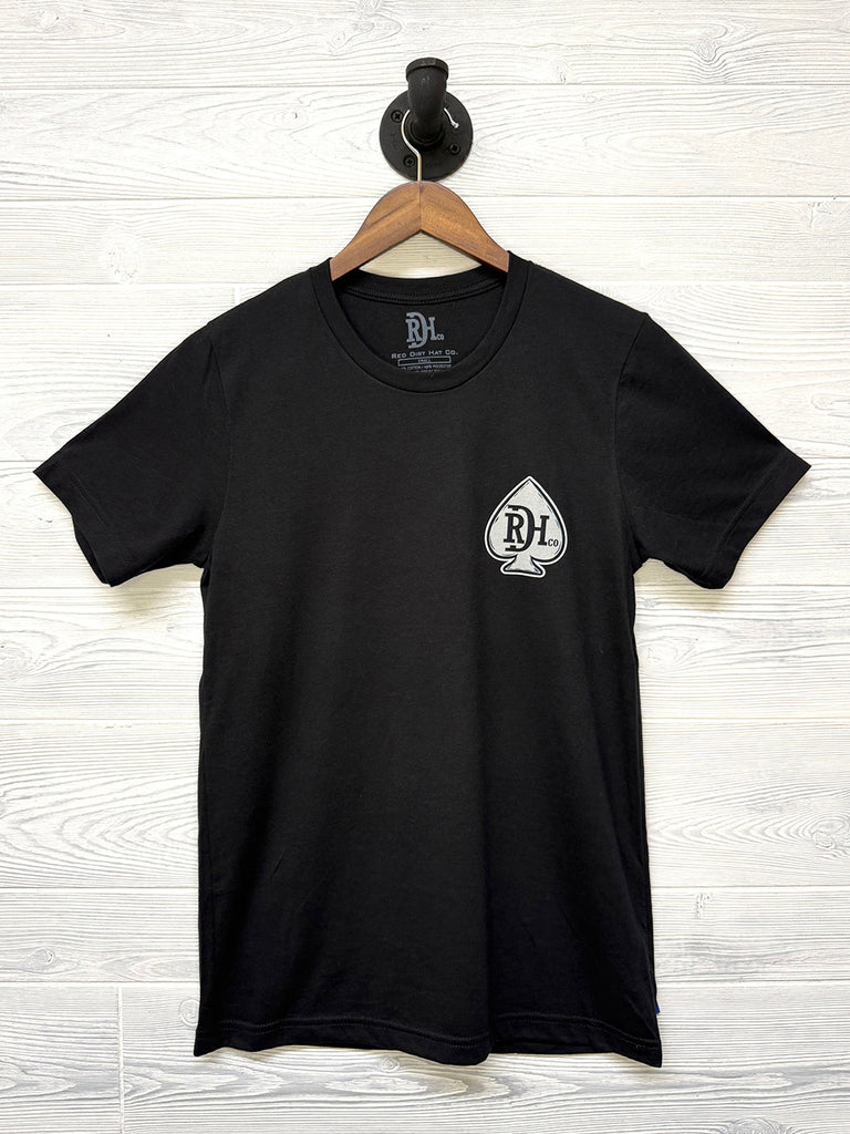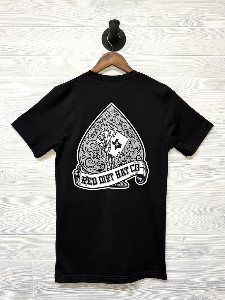 You can’t lose with the Hold ’Em Tee by Red Dirt Hat Co. This unisex black tee features the signature RDH logo on the front chest inside a spade design and a bold “Hold ’Em” graphic on the back inspired by the spirit of the game and the grit of the West.
