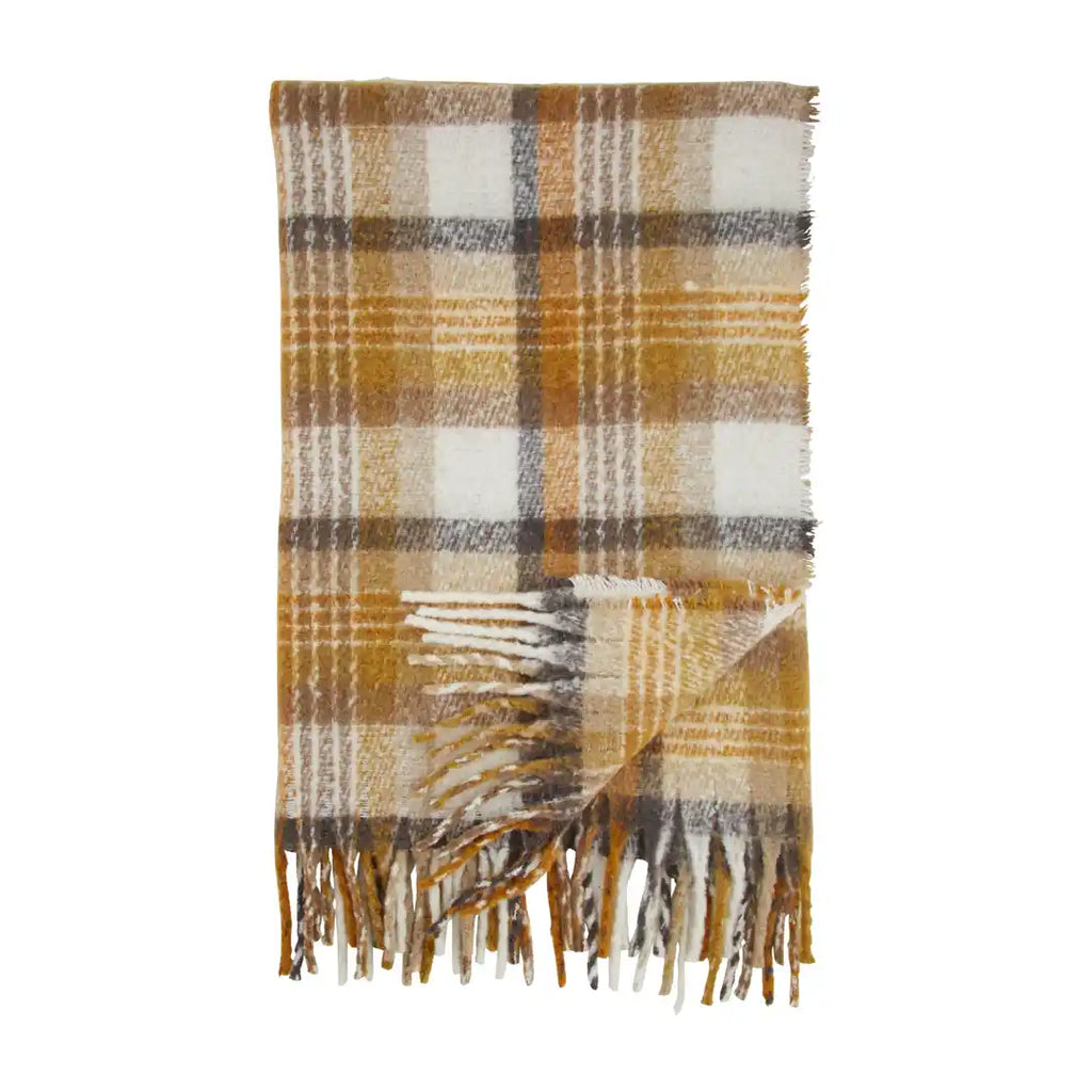 Mud Pie Tan Chenille Checked Blanket | Cornell's Country Store