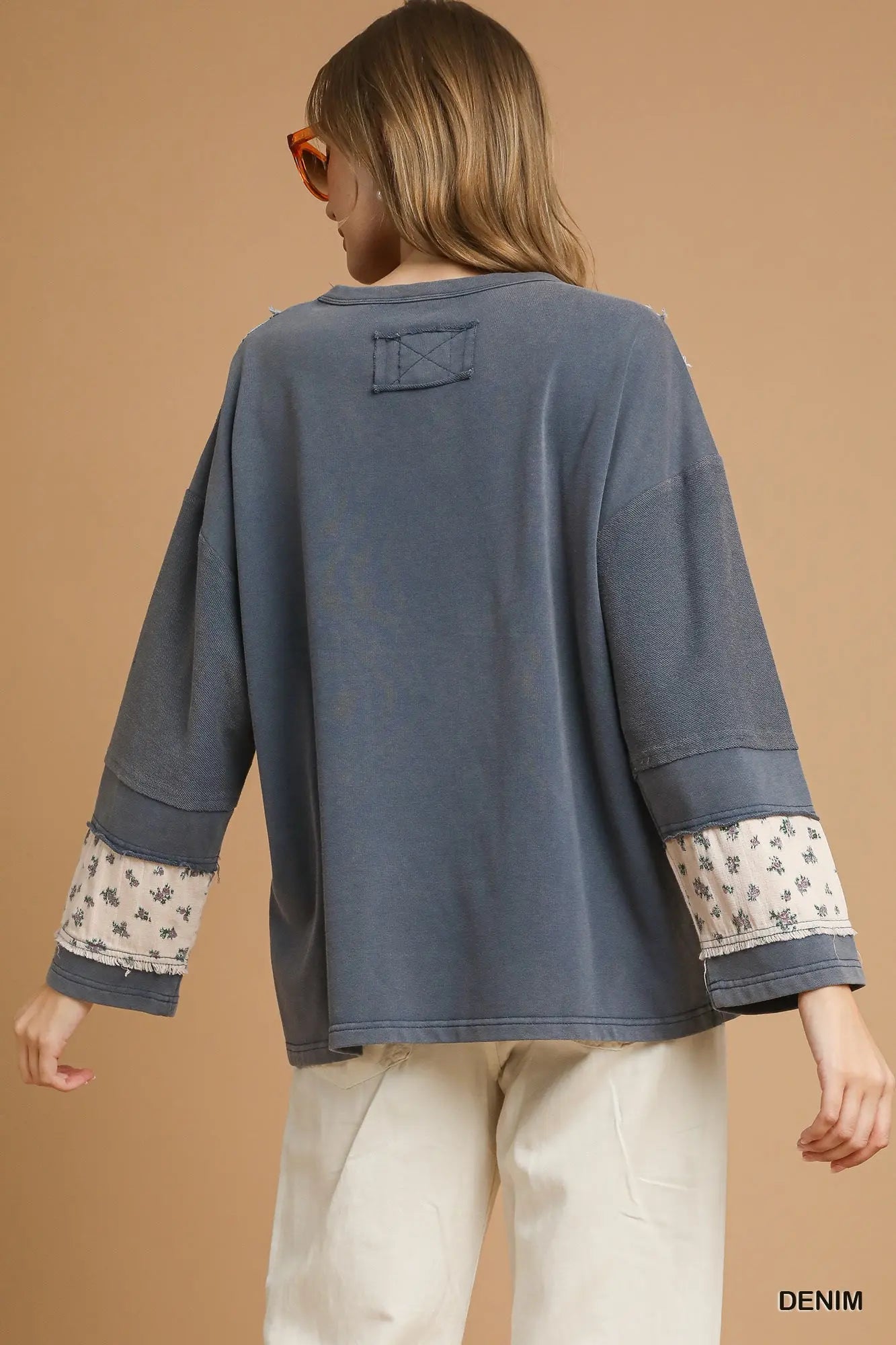 Casual comfort meets artsy detail in this French Terry Patchwork Pullover. Crafted in soft mineral-washed French terry, it has that perfectly worn-in feel you’ll want to live in. The relaxed fit keeps it easy and flattering, while the wide sleeves get a charming upgrade with floral and paisley patchwork accents. It’s the kind of top that feels special without trying too hard—perfect for coffee runs, weekend errands, or cozy nights in.