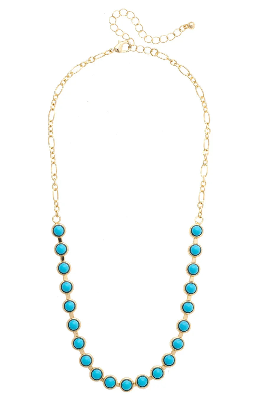 Simple, polished, and easy to wear—this delicate necklace adds just the right touch of turquoise to your everyday look. The mix of gold chain and turquoise accents creates a clean, balanced style that feels both classic and fresh.