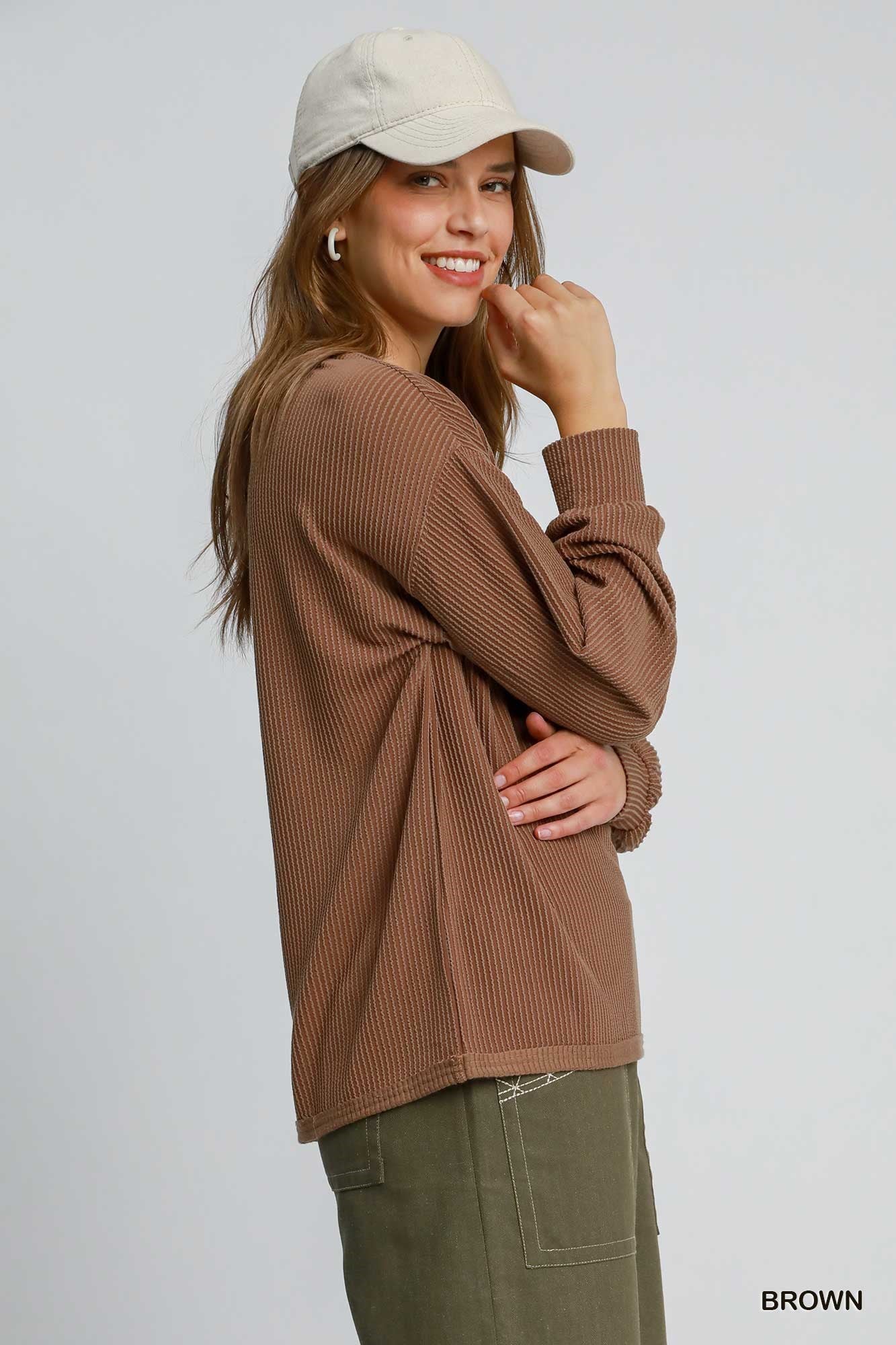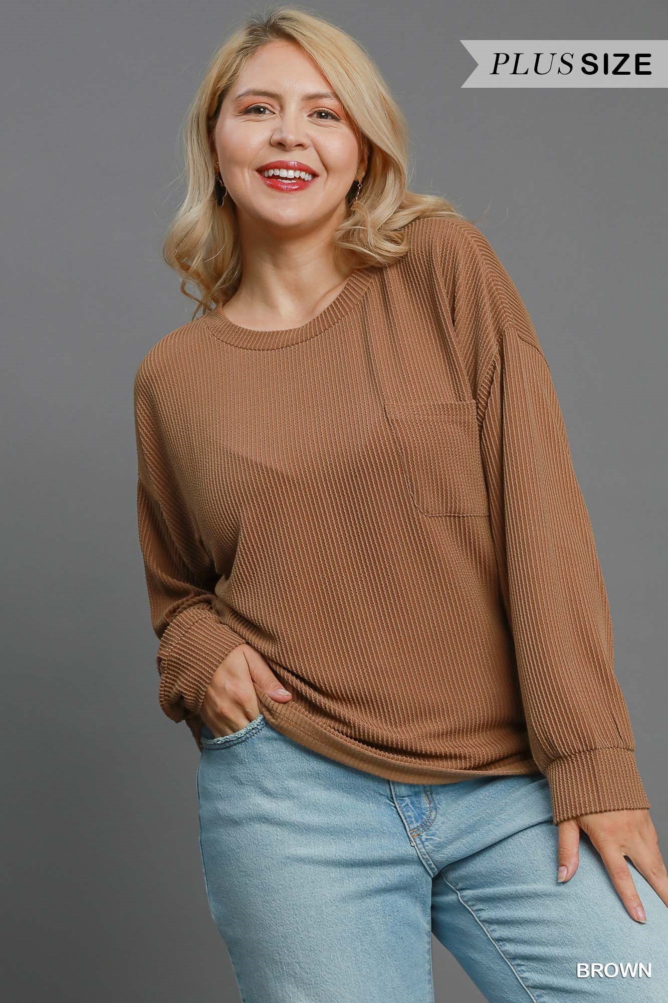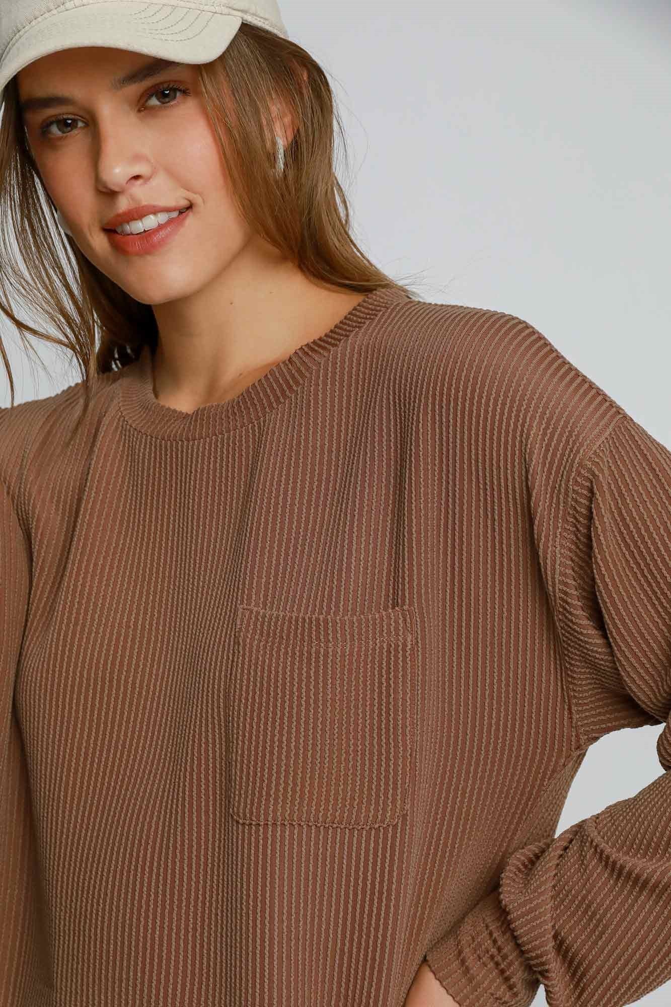 Cozy meets casual in our Brown Textured Knit Long Sleeve Top. Crafted from a soft poly-rayon-spandex blend, this top offers a relaxed fit with just the right amount of stretch. The textured knit fabric adds dimension, while the front pocket brings a touch of laid-back charm. Perfect on its own or paired with the matching pants (sold separately) for a coordinated look that’s effortlessly stylish.