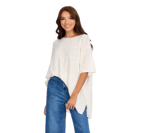 Easy, breezy, and full of charm — the Evan Top is your new go-to for casual days that still call for a little style. This one-size-fits-most gem is made from a dreamy blend of cotton slub and viscose knit, giving it just the right amount of drape and swing. The relaxed boxy fit flatters without trying too hard, while the swing hem adds a playful twist to your everyday look. Whether you're chasing errands or chasing toddlers, the Erin Top has you covered (literally and fashionably).