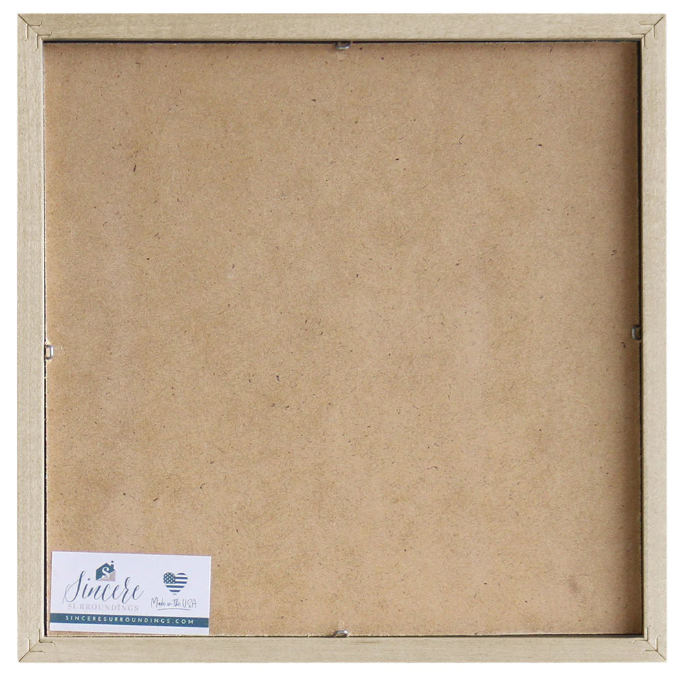 This piece is composed of pine wood frames and an MDF insert. You can hang this design from the deep lip or sit it on a tabletop or shelf. Dimensions 24” x 24” x 1.5”. Product weight – 128 oz Proudly designed, printed, and made in the USA by Sincere Surroundings.