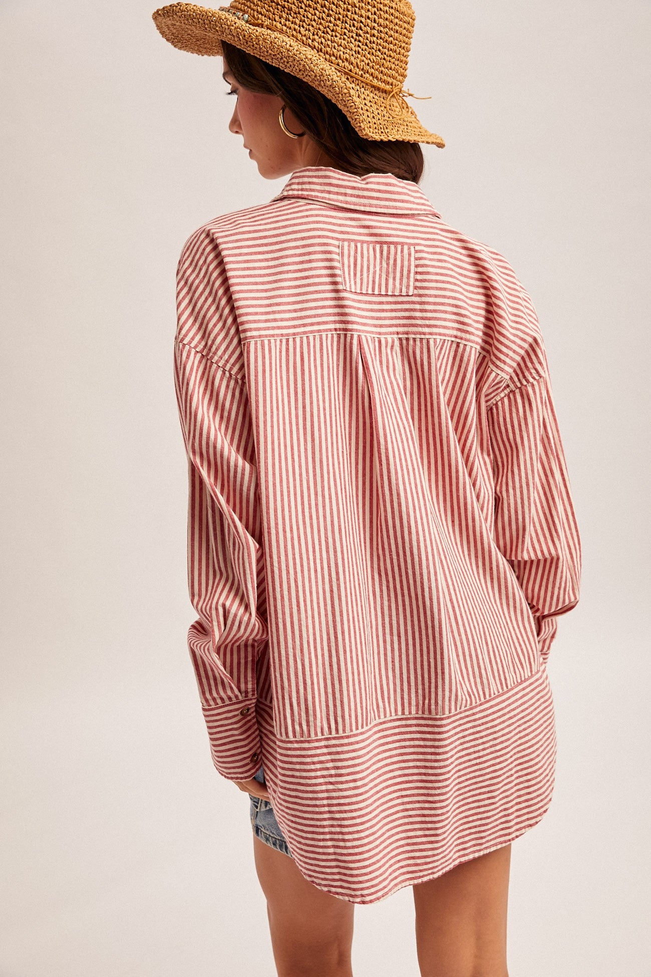 Oversized Striped Button Down Long Sleeve Shirt