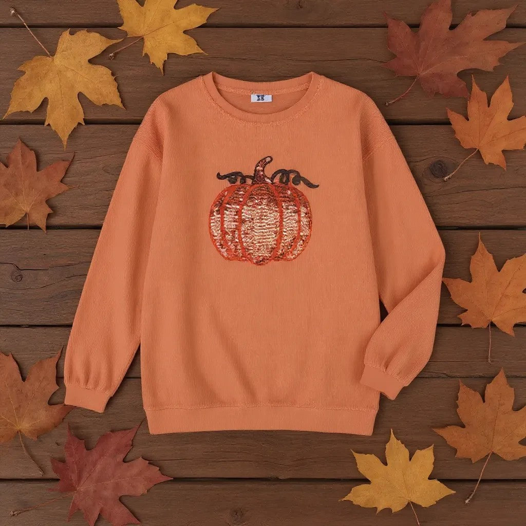 🎃 Sequin pumpkin detail adds a festive fall sparkle