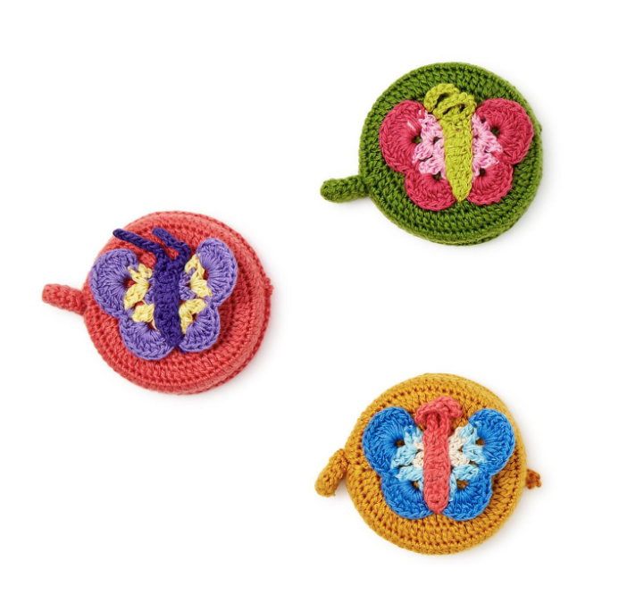 Add a little whimsy to your workspace with this Butterfly Crochet Tape Measure. Handmade with a charming crochet knit design, each measuring tape features a colorful butterfly motif that’s as delightful as it is functional.