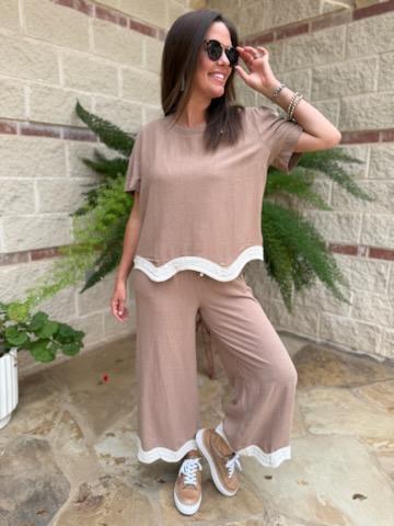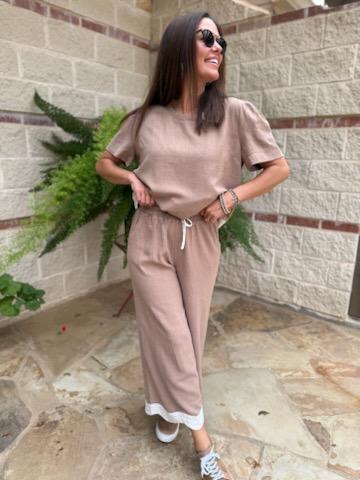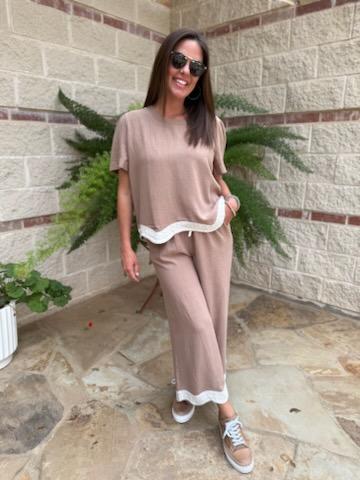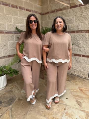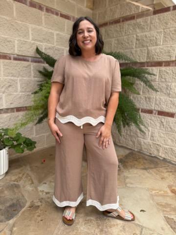 Chic, timeless, and effortlessly feminine, the Latte Linen Scallop Hem Top is a wardrobe staple with a refined touch. Crafted from a breathable linen blend, this top offers lightweight comfort with a naturally elegant drape. The scalloped hemline, featuring a contrasting fabric trim, adds a unique and elevated detail, making this piece stand out with subtle sophistication.