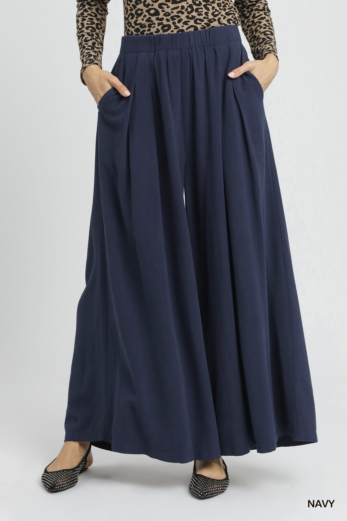 Flowy, chic, and made for comfort — these Navy Wide Leg Palazzo Pants are your new wardrobe staple. Crafted from a soft linen blend, they feature a flattering elastic waistband, roomy side pockets, and a wide leg silhouette that drapes beautifully. Perfect for pairing with anything from a simple tee to a dressy blouse, these pants take you from casual days to elevated evenings with ease.
