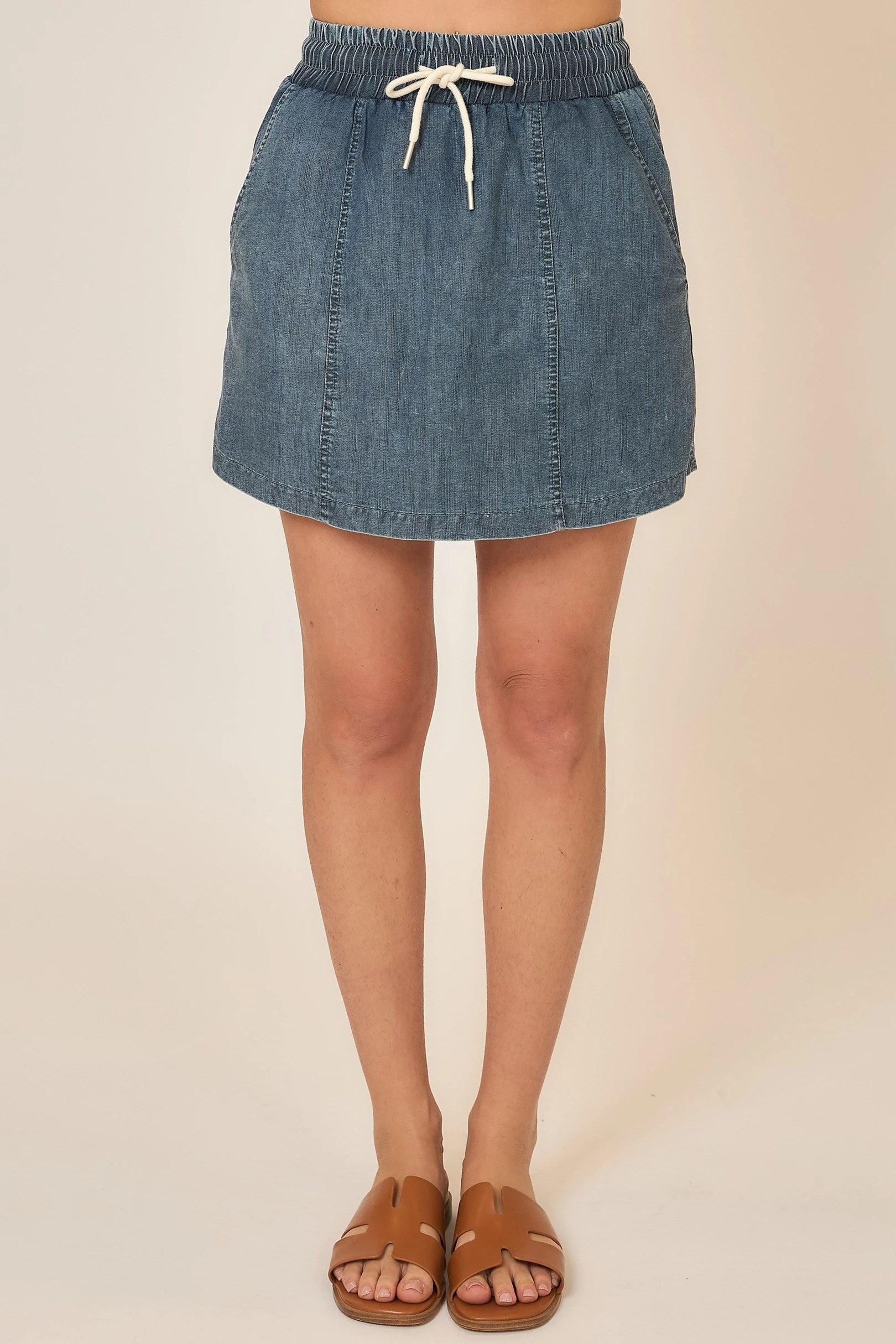 With its soft washed denim feel, elastic waistband, and functional drawstring, this skort is made for real life. Whether you’re running errands, heading to lunch, or spending the day on your feet, it keeps you comfortable while still looking put together.