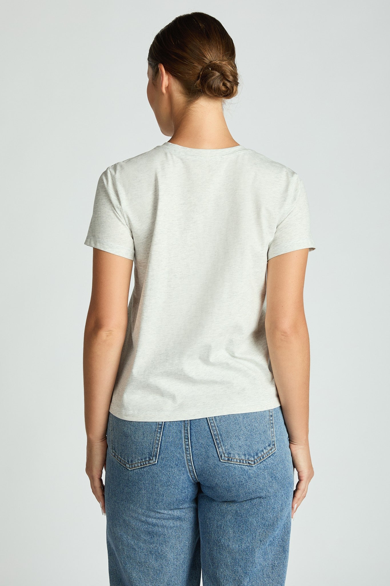 This is not your average white tee. Clean, classic, and made from premium 100% cotton, this relaxed-fit tee is designed to sit a little higher than a boxy graphic tee—giving it a more polished, intentional look without feeling cropped. It’s that perfect in-between length that looks great front-tucked, half-tucked, or worn loose with high-rise denim.