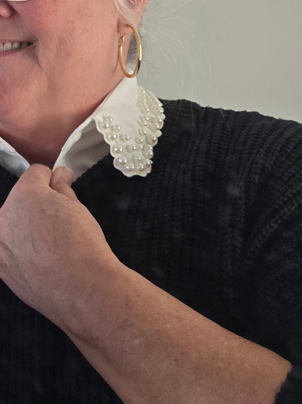 Add instant elegance to any outfit with our White Pearl Faux Collar. This detachable dickie collar gives you that “layered blouse” look without the bulk—just slip it under your sweater, dress, cardigan, or crew neck tee and you’ve got polish in seconds. The double-row pearl detail adds the sweetest touch of luxury and femininity, making it perfect for both everyday style and special occasions. One of those accessories you didn’t know you needed… until you try it!
